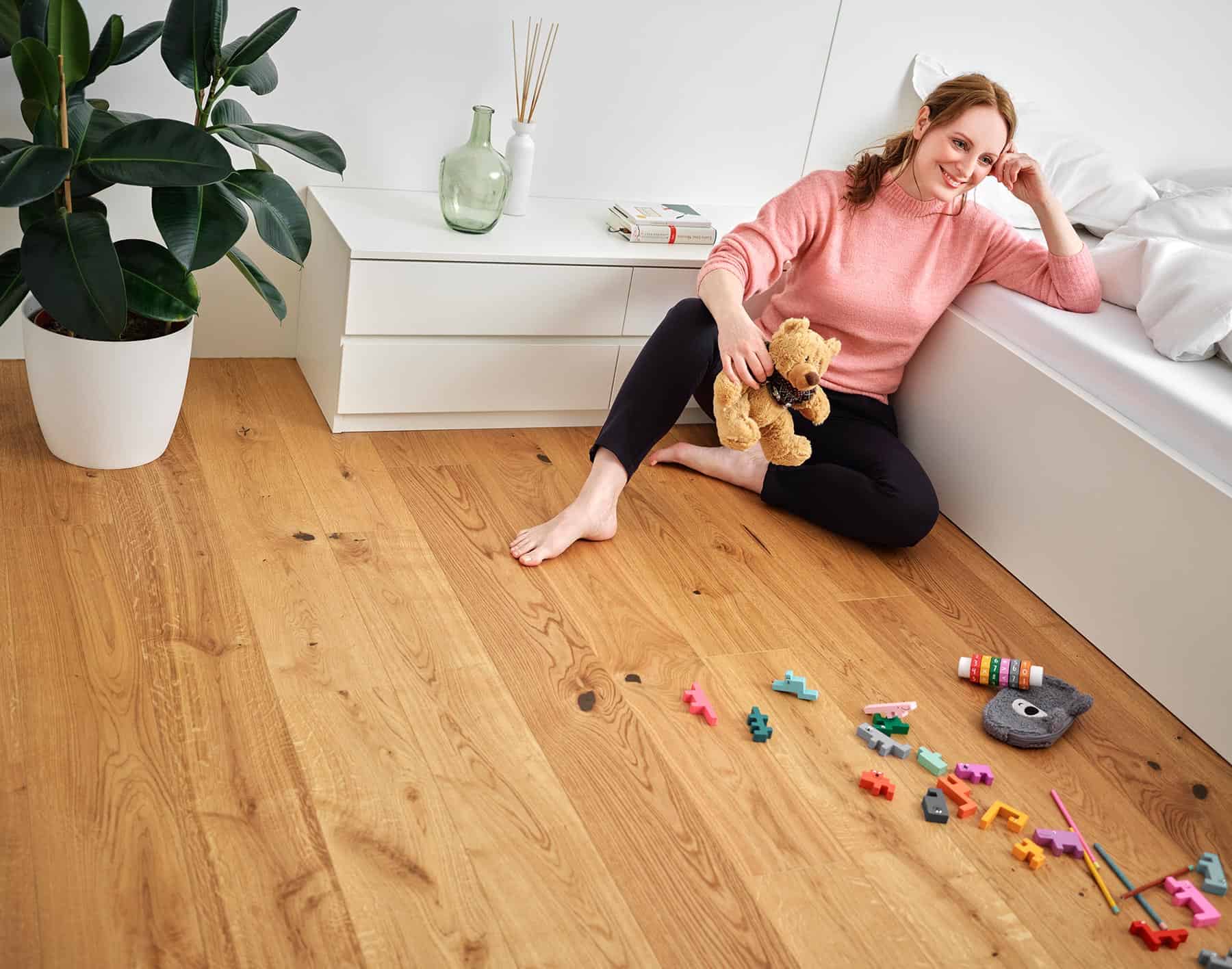 Idealne powierzchnie, Dzięki antyalergicznym właściwościom antybakteryjnym, antystatycznym i żywym, Weitzer Parkett tworzy higieniczną, zdrową atmosferę dobrego samopoczucia. W przeciwieństwie do dywanów, kurz i brud nie mogą trwale przylgnąć do gładkich powierzchni, a roztocza nie mają siedliska.