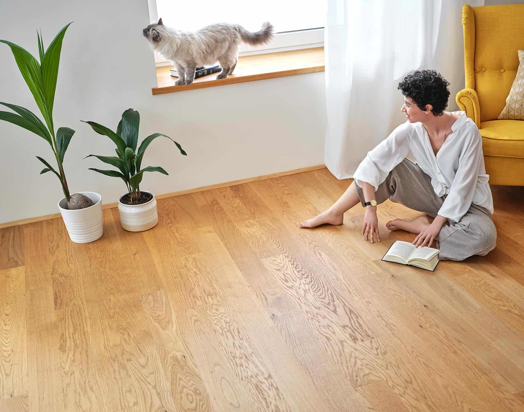 Uciążliwa pielęgnacja jest już przeszłością dzięki łatwej w utrzymaniu podłodze parkietowej Weitzer Parkett: połączenie różnych technologii umożliwia zachowanie oryginalnego połysku i wzoru parkietu bez konieczności intensywnej pielęgnacji i konserwacji. Nasz bezobsługowy parkiet ma powlekaną powierzchnię o naturalnym, matowym wykończeniu — można nawet poczuć pociągnięcia pędzla*. Nawet środki chemiczne nie mogą zniszczyć bezobsługowego parkietu. Co więcej, parkiet jest również w dużej mierze chroniony przed wnikaniem i gromadzeniem się kurzu. Niezliczone lata doświadczenia firmy Weitzer Parkett w zakresie suszenia drewna pozwoliły na opracowanie systemu, który zapewnia idealne dopasowanie i zapobiega problematycznym szczelinom.